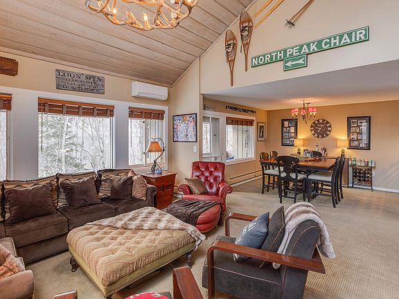 Paradise found in this 3 bedroom plus loft town home offering views of the Loon slopes and close proximity to the White Mountain Nation Forest. The town home features vaulted ceilings and lots of glass in the open concept kitchen, dining and living area. There is also an updated gas fireplace, cost efficient, forced hot water baseboard gas fired heat, mini-splits on WIFI and a slider leading to a deck where you can sit and enjoy the sights and sounds of nature. On the lower level are 2 bedrooms, full bath with laundry while on the top floor is the master bedroom suite with a private bath. Clearbrook is well organized vacation home community across the street from Loon Mountain with shuttle bus service to the slopes and access to a complete recreation facility. One of the area's most popular floor plans and ready to move in and begin building those great family memories.