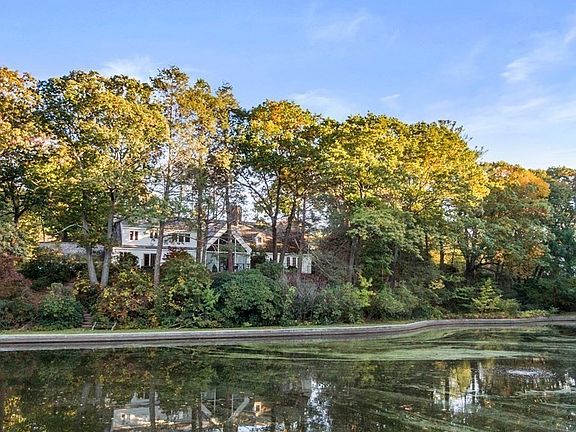 Nestled amongst trees with expansive views and frontage over Pierce Pond, this exquisite home offers a unique setting of over 2 acres close to commuting routes and Wellesley center. Soaring cathedral ceilings in the foyer and living room and floor to ceiling windows provide open, airy spaces for entertaining with every room on the first floor opening to the exterior, perfect for indoor, outdoor living. The spacious dining room leads to the chef's kitchen with breakfast area and walk-in pantry. A cozy family room with fireplace, built-ins and nearby wet bar offers casual space from which to enjoy the view. The first floor master suite with fireplace plus full bath takes up one wing of the house and has a separate dressing room, lined with closets (each having French doors) and a sink for getting ready. The second floor comprises 3 further good-sized bedrooms, 2 full baths and an office area. A 2-car garage, walk-in cedar closet and partially finished basement complete this lovely home.