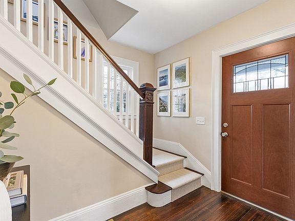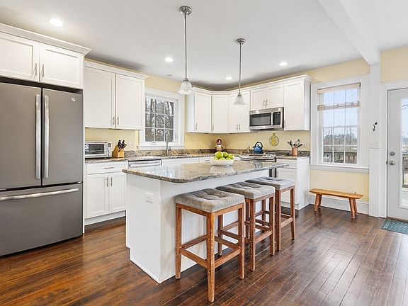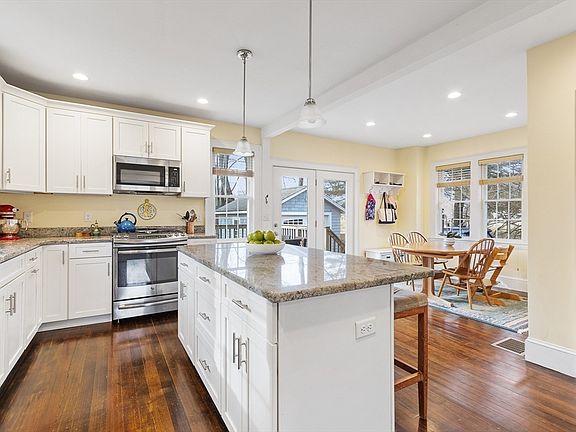 Move right in to this renovated gem! This 3 bedroom, 1.5 bath Gambrel Colonial is where modern comfort meets classic charm. Enjoy an updated kitchen w/white cabinets, beautiful granite counters & ss appliances.The kitchen flows seamlessly into the dining area, creating a spacious & inviting atmosphere. A slider to the back deck extends the living space outdoors. High ceilings & large bay window flood the living room w/natural light. The upgraded half bath completes the 1st floor. The 2nd floor includes 3 sizable bedrooms & a nicely appointed bathroom w/a double vanity & tiled tub/shower and a convenient 2nd floor laundry. The 3rd floor is versatile space that can be used as a playroom, office, workout area or for additional storage & it is climate controlled & carpeted for comfort. Watch the stunning sunsets from the deck & big backyard, perfect for entertaining & relaxing. The garage & newly expanded driveway provides lots of parking. Just steps to 3 pre-schools, library & rail trail.