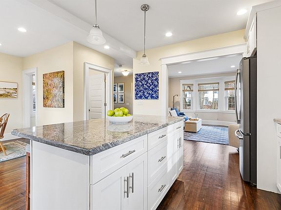 • Features: Flooring - Hardwood, Countertops - Stone/Granite/Solid, Kitchen Island, Cabinets - Upgraded, Open Floorplan, Recessed Lighting, Stainless Steel Appliances, Gas Stove, Lighting - Pendant