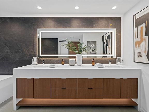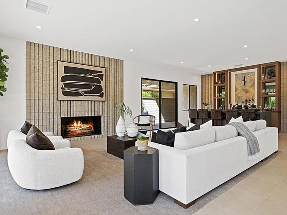 This designer remodeled home is next level...Newly reimagined, this Broadmoor floor plan will certainly make you the envy of your friends and family! A beautiful pivot front door greets you and as you step inside, you'll see raised ceilings, smooth coat walls and large format porcelain tile flooring. With an open concept kitchen, custom cabinetry, 60' integrated refrigeration system, dual convection oven, 6 burner professional range top and large quartz island, you will be able entertain effortlessly and in style! To get the party started, your guests can gather around the spectacular bar complimented with split faced concrete accents and warm lighting. The primary bedroom has stunning mountain views and a fabulous walk-in closet with custom built-in cabinetry. The bathroom is spa-like with a large soaker tub, large format tiled walls and lighted mirror. Outside, the large, private yard features a completely renovated pool with new tile, water features and wi-fi compatible variable speed pump. The acid washed concrete decking is new along with the desert landscaping. And, there's more- the dual zoned HVAC system and ducting are new as are the gas water heaters. This stunning home is located in The Springs and offers an active lifestyle including an 18 hole championship course, pickle ball and tennis, fitness center and gorgeous clubhouse that plays host to numerous club activities year-round. The Springs is where you belong!