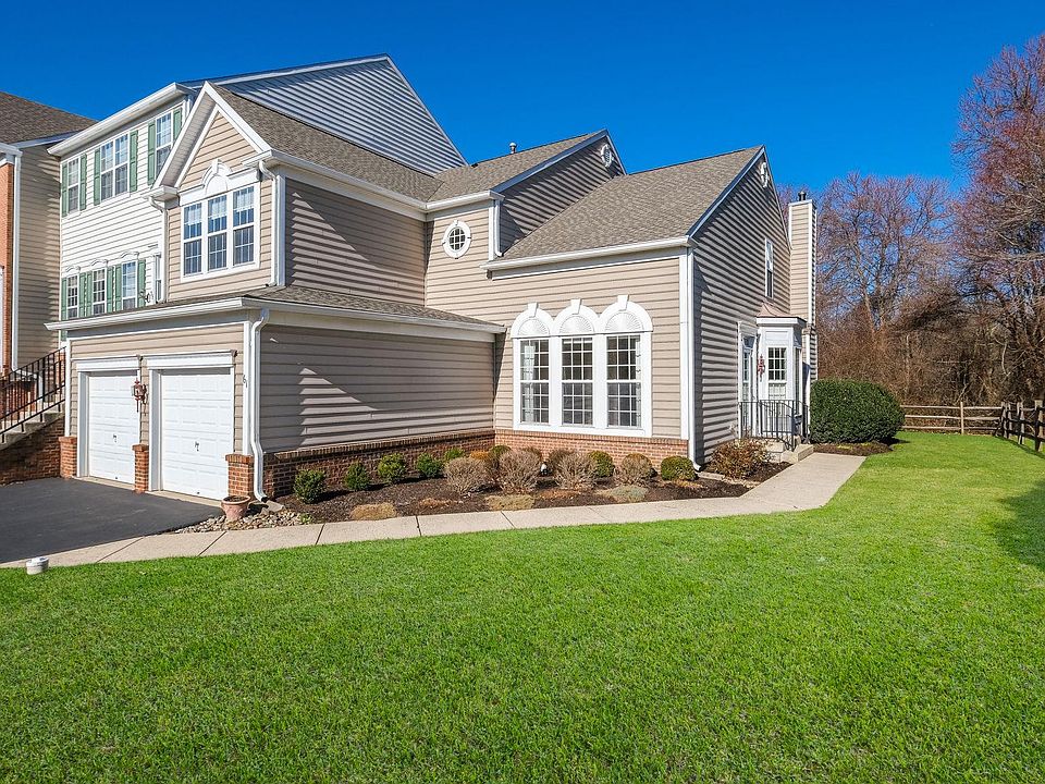Pristine END Unit Townhome with First Floor Primary Suite is now available in desirable Doylestown Station! Built in the Newest section of Doylestown Station, this "Deerfield" Model Townhome features 3 Bedroom/2.5 Baths and sits on a PREMIERE Lot with VIEWS of Trees in the back and the Pond to the left. Pride of ownership is seen throughout with UPGRADES including an Extended Family Room with Vaulted Ceiling, Gas Fireplace with Floor to Ceiling Trim work, Gourmet Kitchen that is open to the Family Room with Sliders to Deck with Retractable Awning. Enjoy this incredible location with privacy on your back deck! The Gourmet Kitchen features Cherry Cabinetry, Corian Counters with Breakfast Bar, Gas Cooking and a Pantry. The Side Entry Front Door opens into the Sunny Living Room with Chunky Crown Molding and Lots of Windows. The Dining Room is straight across with a charming Bay Window. The First Floor Primary Suite features Hardwood Floors, a Walk-in Closet plus a Second Closet and a Sparkling Clean White Bath with Soaking Tub, Shower and Double Sinks. The Laundry Room and Powder Room are conveniently located just inside the TWO CAR Garage. Upstairs there is a HUGE Loft Space that is currently open to the Family Room. This Multipurpose Space could be an Upstairs Family Room, Workout Room...or you could possibly make it into a 4th Bedroom if needed! There are TWO Other Good-Sized Bedrooms Upstairs with a Jack and Jill Bath --that also opens into the LOFT! The Unfinished Basement features an Extra 12 inches of height and is plumbed for an additional Bath, if desired. These Owners even had an Egress Window installed when they built the home. Right next to the home is the Walking Path to Central Park! Enjoy the carefree Lifestyle where the HOA covers your lawn, exterior maintenance, common area maintenance, snow and trash. Newer Roof, HVAC and Hot Water Heater. Quite possibly the BEST Location in Doylestown Station, this Stunning Home is now ready for its next owners!