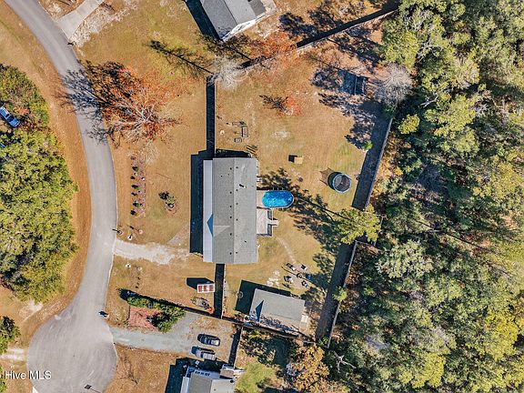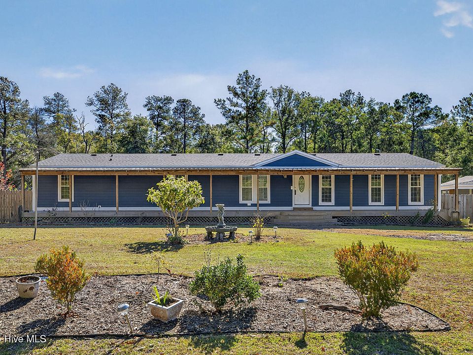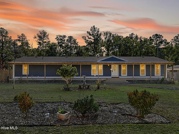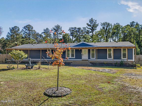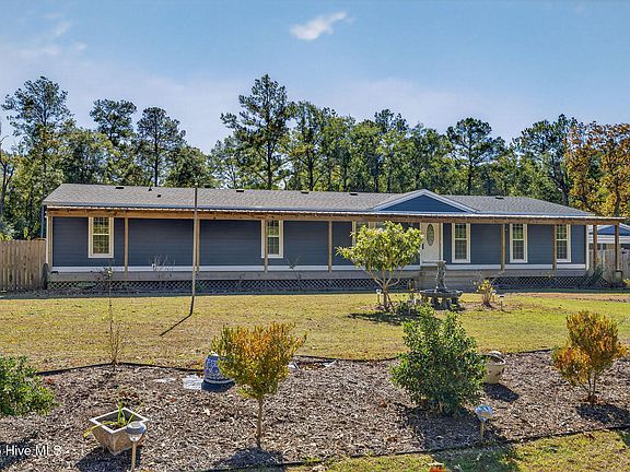 This beautifully renovated 4-bedroom, 2-bath home on .78 acres offers fresh paint throughout and is the ideal blend of modern updates and timeless comfort. Between 2020-2021, the home received extensive renovations including new hardboard siding, new plumbing, electrical, HVAC, roof, hot water heater, windows and more. The inviting covered front porch spans the width of the home - perfect for morning coffee or relaxing at sunset. Step inside to find smooth ceilings and crown molding throughout. The spacious living room with built-ins provides flexibility for furniture placement, while the separate family room features a cozy wood-burning fireplace and French doors leading to the back deck and pool area. The open-concept kitchen is a true centerpiece, featuring quartz countertops, stainless steel appliances, walk-in pantry with custom shelving and elegant tile backsplash with gold-accented bullnose finish. The large kitchen island invites gatherings and connection. The primary suite is a retreat of its own with floor-to-ceiling windows, large dual closets with custom shelving and a stunning ensuite bath boasting dual vanities and a tiled walk-in shower behind a charming barn door. Enjoy outdoor living on your spacious deck overlooking the fenced backyard and above-ground pool. A detached 27'x15' accessory building offers endless possibilities. Perfect for storage, a workshop, home office, or studio. Located in a cul-de-sac within desirable Green Oaks Landing, this home offers low HOA dues and a whole-house Culligan water filtration system. Conveniently located less than 5 miles from the Holly Shelter Boat Ramp for easy access to the Northeast Cape Fear River and only 25 minutes to Wilmington.