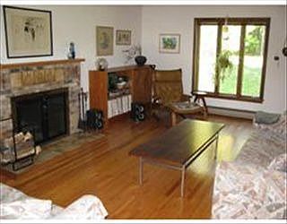 In town location. Walk to everything! One level living in this well maintained ranch. Set very far back from the road on over 1 acre of land. Two car detached garage plus a small outbuilding. The two bedrooms each have a private bath plus a third bath for guests. Nice dining area off the family room. Sunroom also off the family room. Light bright living room with wood floors and fireplace. First floor laundry. Natural gas heating system ten years old. Newer roof.