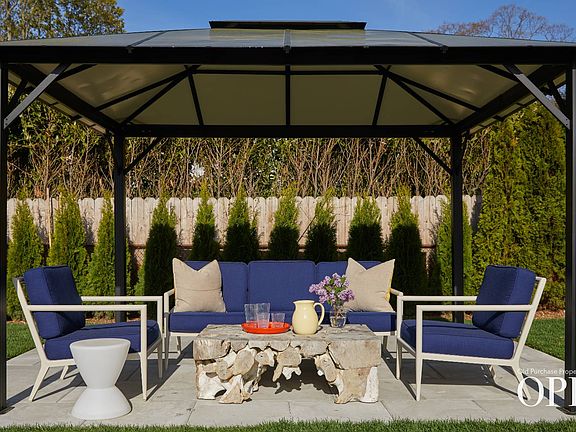 This move-in ready home features three bedrooms and two full bathrooms, including one with a soaking tub. Inside, vaulted ceilings and oversized windows fill the space with natural light, creating an open and airy feel. The bright, spacious kitchen with marble countertops flows seamlessly into the dining area and living room, where a gas fireplace adds warmth and character. Sliding doors lead directly to the backyard, enhancing the indoor-outdoor connection. The outdoor space is designed for both relaxation and entertaining, featuring a fully fenced, heated saltwater pool (34 ft x 16 ft), a landscaped garden, multiple seating areas, and a gazebo-covered patio. Additional highlights include a shed, an outdoor shower with hot water, and recent upgrades such as a new roof, guttering, and chimney flashing (Dec. 2024). Bellport Village offers a unique blend of small-town charm, a vibrant arts scene, and a strong sense of community. With access to the Bellport Country Club, a private ferry to Ho-Hum Beach, art galleries, restaurants, and boutique shops, it's a sought-after destination for those looking to enjoy coastal living with a cultural touch.