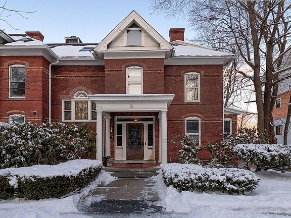 Grand old-school condominium overlooking downtown Northampton. An easily accessed first floor unit in a beautiful old mansion. Move from the huge living room with its elegant fireplace, oak trim and curved windows to a sunroom kitchen overlooking the town and across the Valley to distant hills. One bedroom offers antique french doors with diamond mercury glass paned inserts and a huge window view of downtown, while the other is a corner room with a fireplace and oak columns overlooking Crescent Street and its elegant homes. Beautiful old edge grain oak floors throughout. Spacious bathroom with a custom tub and washer dryer. Unit has off street parking and a large common garden area. Showings to begin at open house Saturday, 1-3pm.