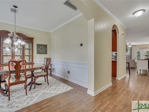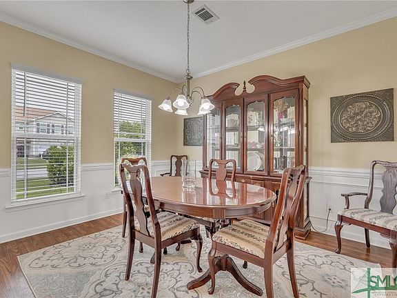 Inviting 5BR, 2.5BA home features a desirable open floor plan with a spacious primary suite conveniently located on the main level. Four more bedrooms upstairs plus a large loft area provides additional living space and tons of storage. The kitchen showcases upgraded cabinets and stainless steel appliances. Step outside to a fenced backyard with an extended patio, perfect for entertaining and enjoying the wooded backdrop. Community amenities include a large, resort style pool, clubhouse, fitness center, and playground, providing ample options for recreation and relaxation. Newer roof & HVAC. Convenient to downtown Savannah, Ft Stewart, HAAF, the airport, Gulfstream and the Port.