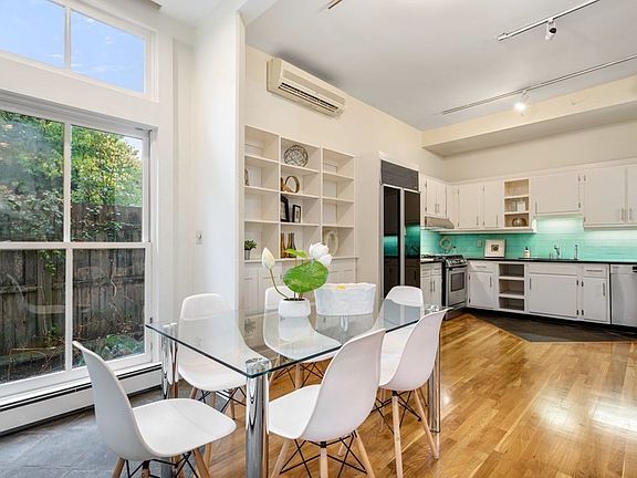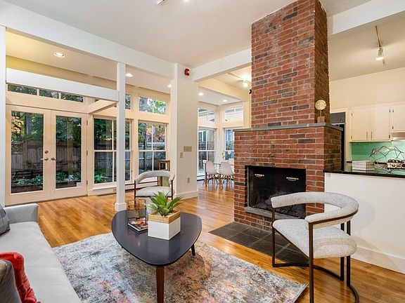 Rare-to-market Mid-Cambridge Opportunity! Just minutes to Harvard, Inman & Central Squares, this townhouse-style 2 bed/1.5 bath home is secluded urban oasis. A unique combination of mid-century modern in a stately Mansard Victorian, enjoy floor-to-ceiling windows spread across a dramatically open main level. Looking out on a private patio and lush garden area, the open living/dining/kitchen area is filled with sunlight, 10+ ft ceilings and a central, exposed brick fireplace accenting the dramatic space. Kitchen include glass subway tile backsplash and soapstone countertop. The upper level features 2 nicely sized bedrooms; step outside onto a modern, southwest facing balcony off the master bedroom. The finished basement has its own half bath w/ easy access to plentiful storage and laundry. Ductless a/c, off street parking, well-run association. An urban oasis easily accessible to all that Cambridge has to offer. Offers, if any, due Tuesday, October 27th at 12PM.