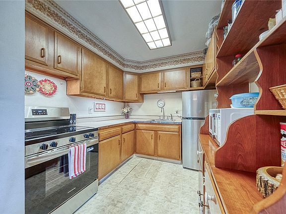Neutral decor and spacious rooms throughout this 2 bedroom condominium that features a private balcony off of the living room. Brand new stainless steel refrigerator and electric stove installed 5/9/25 each have a 5 year warranty. Updated lighting, spacious closets with a stackable washer/dryer in the 2nd bedroom closet. Storage locker and detached garage included. Newer carpeting on the balcony. Maintenance fee includes gas, water, sewage, trash, landscaping and snow removal. Owner pays electric and cable. Coin operated washer and dryer also located in the building.