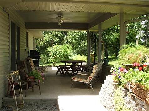 Beautiful home located on approx. 1 acre. Maintenance free exterior and a great Sunroom with thermalpane windows. 29 x 6 covered front porch and 13 x 20 covered patio in back of home. 2-car attached garage and 36 x 36 metal Shop with its own bathroom and 12' doors/walls to park an RV with plenty of room left for storage. Kitchen has all SS appliances and very open floor plan, wood vaulted ceilings, ceiling fans with remotes and skylights. Both baths are handicap accessible and all doors are 36'' wide. Short walk to the lake with a limited winter view. 10 minutes or less to newly remodeled Cape Fair Marina for 3rd party slip. Nice privacy, but not too far from shopping and etc.