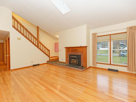 Colonie Contemporary Living room features vaulted ceilings, wood floors and Gas Fireplace. Dining room and kitchen with entry to generous deck for summer enjoyment. 2 bdrms on the 1st floor with a full bath, 1st flr laundry/ mud room to the garage. Second floor offers 2 additional bdrm and a full bath, several walk in closets. Lower level is nicely finished family room with a gas fireplace and a large workshop. Attic storage. Exterior painted in 2020, roof 2019, Heating and Central air 2010. Driveway sealed in 2020. Taxes without Star and Vet exemptions. Please follow Covid Guideline.