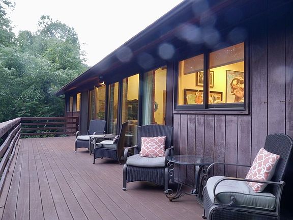 Are you looking for a serene escape and a reinvigorating relationship with the natural environment? This property simple and beautiful design expresses fundamentals to personal well-being and brings forth a most relaxing lifestyle. The best of both worlds here. Located in a neighborhood setting and on a cul de sac located 1.2 miles to the town center and on 1.27 aces. With nature as your neighbor, you'll love the small brook's serenity that runs through the 9 acres of The Fort River Conservation Area which this property abuts. Comfortable and spacious open floor plan with numerous large windows connect you to nature. There is a large wrap around composite deck which surrounds the dining and living room. The living room and the lower level den both enjoy cozy brick fireplaces to gather. A short walk to Groff park, bus stop and five minutes to the bike trail. Many updates over the years.Buderus heating system.