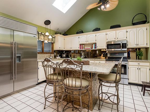- Kitchen: Center Island, Eat-In, Kitchen/Dine, Newer, Sliding Door, TRY/VLT/CATH, Ceramic Tile, Granite/Stone Counter