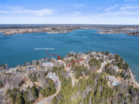 Enjoy year-round sunset and ocean views over Harpswell Sound in this meticulously maintained, timber-framed contemporary home in desirable Dipper Cove neighborhood. First time to the market, this beautifully constructed, 3 bedroom. 2.5 bath Timberpeg contemporary offers one-floor living, an open kitchen, dining area and a sunken living room with cathedral ceilings and skylights, giving an open, airy feeling for entertaining or just relaxing. Other features include hardwood and tile flooring, pantry, automatic back-up generator, and underground power. A wood stove located in the living room offers additional warmth for those cool fall and winter days/nights. The primary bedroom features a private bathroom, a walk-through closet, and its own water-view deck. A covered breezeway connects the home to a spacious, 3-car garage, with storage above. The 0.84 acre lot includes beautiful landscaping. a stone wall, and a croquet court overlooking the ocean. The Dipper Cove community in the town of Harpswell includes a beautiful waterfront clubhouse with a full kitchen, deep-water dock and a protected mooring field in your view. The neighborhood clubhouse is available for meetings, parties, and events, and offers easy walk-out basement storage for kayaks and canoes. The Dipper Cove association includes a common water supply, designated open space area, and road maintenance and plowing. Come enjoy Harpswell's low taxes and the rocky coast of Maine. A true boater's paradise. Within walking distance of the Bowdoin College hiking trails at the marine biology center. Conveniently located within a short drive to Harpswell amenities and downtown Brunswick, and an hour from Portland.