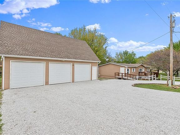 Your New Lake Home is Calling You! You won't want to miss this UPDATED and REMODELED home conveniently located just two minutes from the boat access, clubhouse and swimming pool! SO MUCH NEW - New interior paint throughout, ceramic tile, carpet, sliding glass door, gutters and a refresh of paint on the decks & front fence. It's just waiting for you to enjoy the wonderful amenities of Linn Valley Lakes. The 3-car detached garage has an upstairs loft that has lots of potential - bring your creativity! Linn Valley Lakes is perfect for the full time retiree or a second home to enjoy as a getaway. Just 20 minutes to Louisburg and 45 minutes to the heart of Kansas City. Amenities include boating, swimming, fishing, water sports, 18 hole golf course with clubhouse and restaurant. Multiple community buildings, walking trails, tennis courts, basketball, frisbee golf and so much more!! Sellers are motivated, bring an offer!