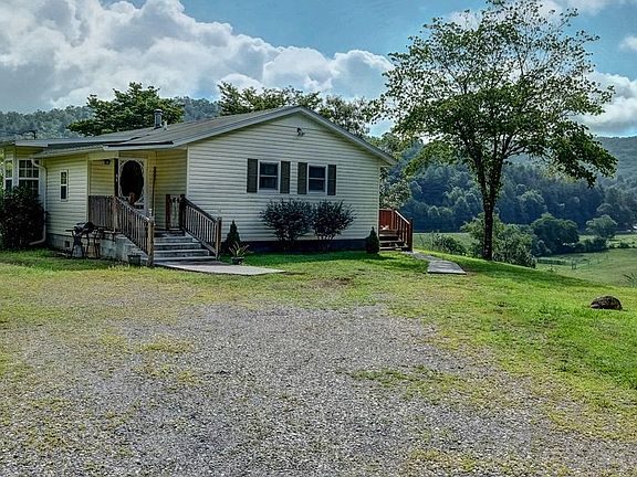 You'll love this picturesque view of mountains and pastures from this single level home with low maintenance! Privacy on 5+ unrestricted acres of land for gardening, farm animals, horses or just to enjoy nature. Inside this 3bed/2bath home is your living room with gas fireplace to warm the chilly mountain evenings. Kitchen has plenty of cabinets and counter space, great for food prep and convenient to your dining room. Down the hall is your guest bath and 2 bedrooms. Your Master Ensuite has large tile walk-in shower and access to your laundry area. Detached garage/carport and TWO BIG pole barns! Sit and rock on your porch or BBQ on your open deck. Peace & Quiet is what you'll find here!