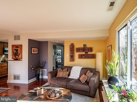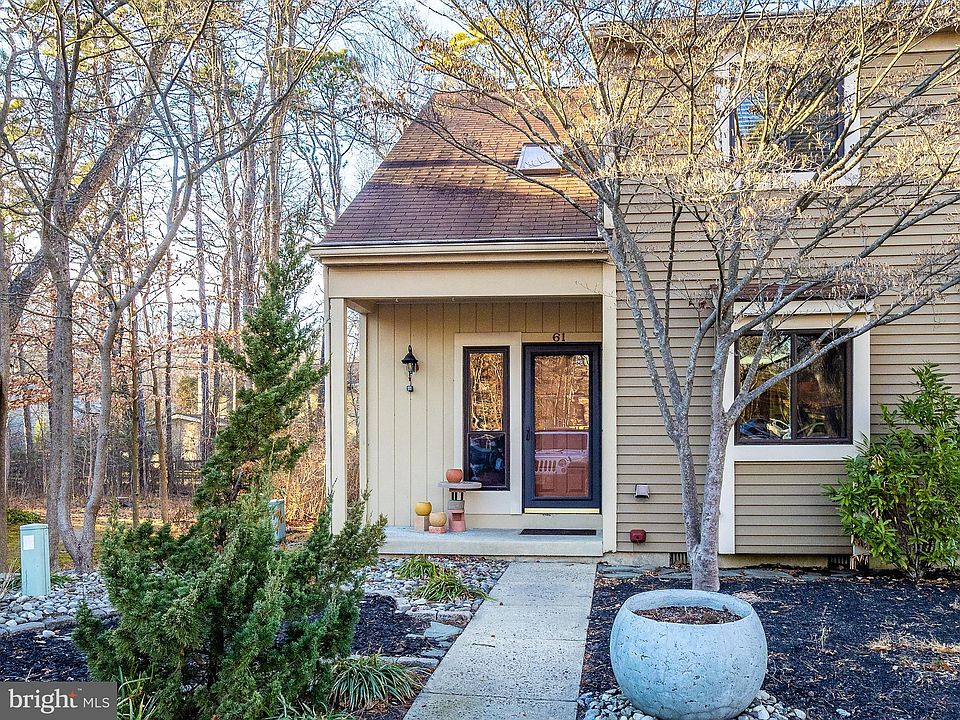 This Fabulous End Unit Monterey model 2-bedroom town home is situated in the desirable neighborhood of Walden Glen in the sought after community of Kings Grant. Upon entering this home, you will find a two-story Foyer drenched in natural sunlight from the above skylight and Natural Cherry hardwood flooring throughout the main level. The half bath lies to the left in the foyer and there are 2 coat closets, one with a hatch door to storage under the switchback stairway. Through the foyer you’ll find the living and dining rooms boasting natural sunlight in early and late afternoon. The living room is centered by a ventless natural gas fireplace, controlled by a handheld remote thermostat to set it to your desired temperature. The stone hearth, mantel and surround are African Slate with subtle earth-tone hues. The dining area will accommodate 4 to 8 guests with ease. Note the beautiful crystal hanging pendant has a wall dimmer switch. The adjacent eat-in galley style kitchen has the appearance of a professional kitchen. Featuring natural Cherry hardwood cabinetry, stainless appliances and back splash with under mount lighting, and concrete counter tops. The cabinets are soft close with pullout trays in the bottom cabinets for easy access. Find the laundry closet next to the breakfast area. Natural gas heating, cooking and clothes dryer. Ascend to the second level, noting the storage closet just before the stairway switch-back. The stairway and bedrooms are all carpeted. A generously sized main bedroom is more than large enough for a King Size bed with ample space for large dressers. From the main bedroom there is direct access to the main bathroom. Recently updated, this full bath features stone tiling, sink, vanity and commode plus fixtures and recessed lighting. The Walk-In shower has a partial glass enclosure. A second bedroom is currently being used as an office, but can accommodate 2 single beds, or bunk beds along with dressers. Sliding glass doors off the living area offer access to the rear yard and spacious deck with updated deck flooring. Here is an ideal spot for year-round barbecuing, summer sunbathing and entertaining. During spring, summer and early fall this space offers total seclusion with a canopy of trees in full leaf. The entrance to the crawlspace is in the attached storage shed. Jantek windows thru'out have a lifetime warranty. Kings Grant enjoys a wonderful location with a lakeside Clubhouse , a myriad of hiking trails through Black Run Preserve, tennis courts, basketball and volleyball courts, tot lots and playgrounds, dog park, and a convenient shopping center. This vibrant community is minutes away from wonderful restaurants and specialty stores at The Promenade and Routes 70 and 73 to the NJ turnpike and 295 offer easy access to Philadelphia, Princeton and the NJ shore. Properties in Walden Glen Townhouses have 3 Association Dues as follows: Walden Glen HOA $175 quarterly KGOSA $219 semi annually Walden Glen Pool (2023 $300) 2025 TBD