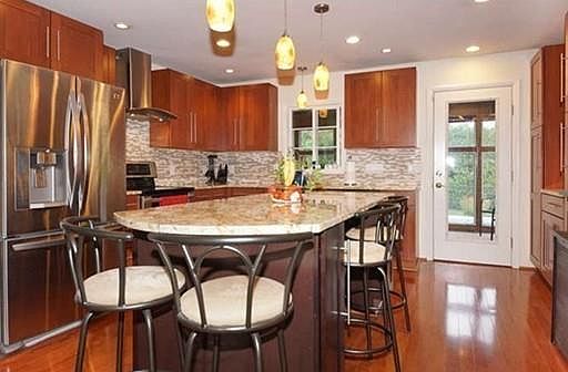 Move into this meticulously maintained and beautifully updated home. Quality updates throughout, complete kitchen remodel in 2010 custom cherry cabinets w/ granite counters/new energy efficient appliances, large island w/ ample seating, matching dry bar w wine rack and granite ,access to a lovely screened in porch overlooking private backyard with in ground pool and outdoor kitchen set up w/granite and storage bin,large open living area great for entertaining , 2 full baths that have been remodeled, gleaming hardwood floors, new roof in 2004,new entryway and driveway in 2015,good size bedrooms and large basement for storage, Outdoor entertainment system for bar area ,pool deck & porch, new brush nickel door handles & ADT security system, 2 car garage and great location with quick highway access, beautifully landscaped , House across from the ball field to enjoy front row seats to watch the games. This is a must see .To many updates to mention Complete list of upgrades attached toMLS
