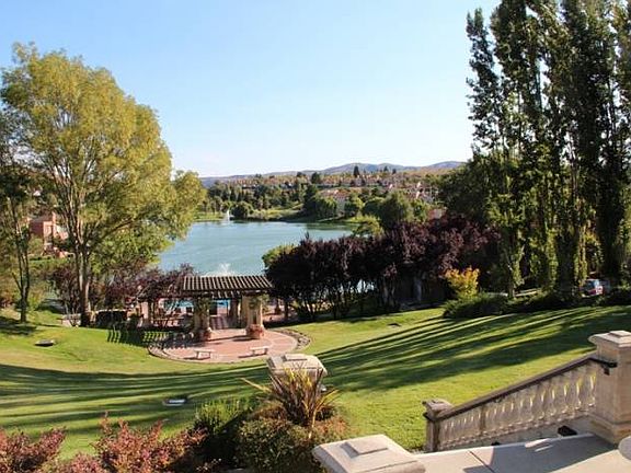 Stunning view! Single story penthouse on the third floor with balcony and lots of windows to see the panoramic view of the lake and hills. Dramatic vaulted ceilings, tile entry, dark wood laminate flooring and new carpeting. The updated kitchen features slab granite counters, newer appliances ad built-in wine refrigerator. The living room, dining room and master bedroom all have beautiful views. Three bedrooms, two baths with inside laundry. Separate two car garage with extra storage area. The complex features an elevator for easy access. The best in carefree living.