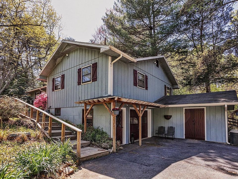 Tucked away on over 3 peaceful acres, this one-of-a-kind 3-bedroom, 3-bathroom home is full of character and craftsmanship. From the moment you arrive, you'll notice unique custom details—like the stunning post and beam ceilings in the living room, rich wood trim, and artisan finishes throughout. The open and welcoming layout features warm hardwood floors, cozy gathering spaces, and a kitchen designed for entertaining. Step outside and explore multiple courtyard-style spaces, ideal for relaxing or hosting guests—including a whimsical wooden bridge and an outdoor pizza oven that makes this home truly unforgettable. Whether you're looking for privacy, convenience, or a lifestyle property with endless potential, this home offers it all—just minutes from town!