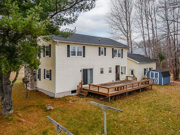 Tucked away from the road, down a tree-lined paved driveway, lies this charming Colonial-style home on a vast 10-acre lot, offering the best of peaceful rural living with swift access to town amenities, schools, and the interstate for easy commuting. Step onto the inviting covered farmer's porch to enter the residence. The interior boasts a traditional layout bathed in natural light, featuring spacious rooms and the timeless allure of Colonial design. The eat-in kitchen is equipped with abundant cabinetry, modern stainless steel appliances, and sliding glass doors leading to an expansive back deck, ideal for hosting gatherings. The living room shines with polished hardwood floors and a stunning stone hearth with a pellet stove insert. An additional room next to the living area can serve as a formal dining room, den, or office. A sizable mudroom off the deck provides the perfect spot for winter apparel storage. Enveloped by scenic vistas, the property offers plentiful space for gardening, leisure activities, or simply enjoying the natural surroundings. Behind the garage is a storage shed, and further back, another open storage structure, both sporting new roofing. A detached two-car garage adds convenience and extra storage space, while the extensive grounds afford privacy and potential for expansion. This home is an idyllic sanctuary for those seeking serenity or a place to forge enduring memories. Seize the opportunity to discover this outstanding Hampden treasure—arrange your visit today!