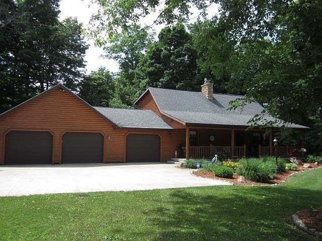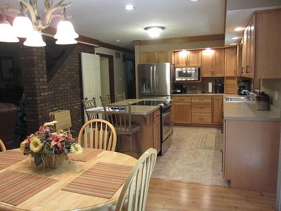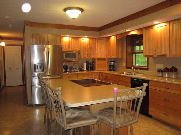 Awesome- Tranquil setting in the woods with creek babbling in back yard. Rustic, warm, well maintained home & yard with many recent updates, and a pier on Little Barbee Lake. New Appliances, kitchenette in basement with sink, cabinets, fridge, and microwave. 3 car garage, generator hook-up, and lots of storage.