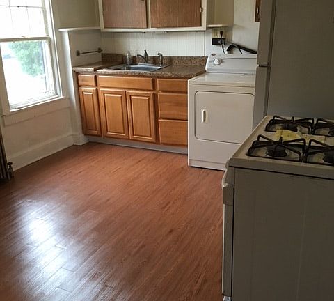 Nice 2 bedroom apartment (with privacy violation in one of the bedrooms) in nice neighborhood. Recently painted and all brand new flooring. Small private side yard included. Washer and dryer in unit. Kitchen and Living Room on first floor, bedrooms and bathroom on second floor. Owner pays water, sewer, trash. Tenant pays electric (heat) and gas (stove). Tenant responsible for snow removal and lawn care. Must have proof of income and good references.