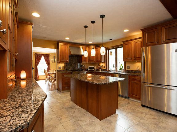 Remarkable Well-Appointed Colonial Home situated on 5 wooded acres welcomes you with modern amenities, skylights, and hardwood floors throughout. You will love the cherry kitchen equipped with beautiful granite counters with center island and a large gas range with a wonderful back-splash and hood, open to a bright dining room and one of two living rooms featuring a charming fireplace and access to the screened-in 3 season porch overlooking the well landscaped backyard. Master suite features a walk-in closet, beautiful master bath, and a deck overlooking the large backyard. Excellent home for entertaining or relaxing in privacy by the in-ground pool, in the full finished basement with wine cellar, in the billiards room, or on your private backyard. Lots of storage throughout including a 3 car garage and large laundry room with plenty of cabinetry.