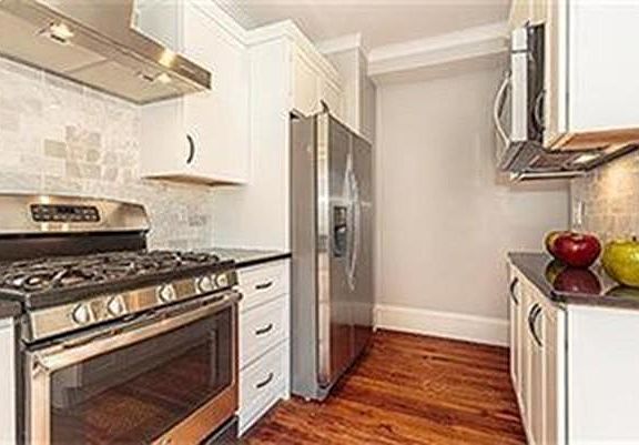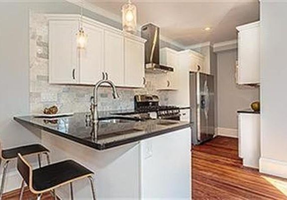 Roslindale top location! Recently renovated bright and modern 3 bedroom condo for rent!. High 1st floor offers beautiful woodwork, stained-glass and bow windows in living room. 3 roomy bedrooms, 1.5 baths and an open living & dining space great for entertaining. Tastefully designed Chefs kitchen, white cabinets, granite couter tops, stainless steel appliances, recessed lighting and breakfast bar. In-unit Laundry, central A/C, high ceilings and hardwood floors throughout. Full bath has glass tile and a deep soaking tub. Enjoy summer evenings on the front deck overlooking the tree lined Street. Walk to Arnold Arboretum, Peters Hill, playground, park, Roslindale shops and Restaurants. The lovely home includes one garage parking space.