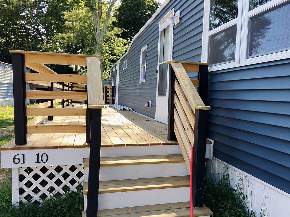 2 bedroom mobile home all new everything! Completely Renovated! ~300 ft from the water - All new : Vinyl Siding, Custom Deck, Electric, Plumbing, Kitchen, Stainless Steel Appliances, Bathroom, Hot Water Heater, Windows, Insulation, Fixtures, WASHER/DRYER. ALL NEW! Updated Electrical Panel, Two Window AC Units No Dogs Allowed.