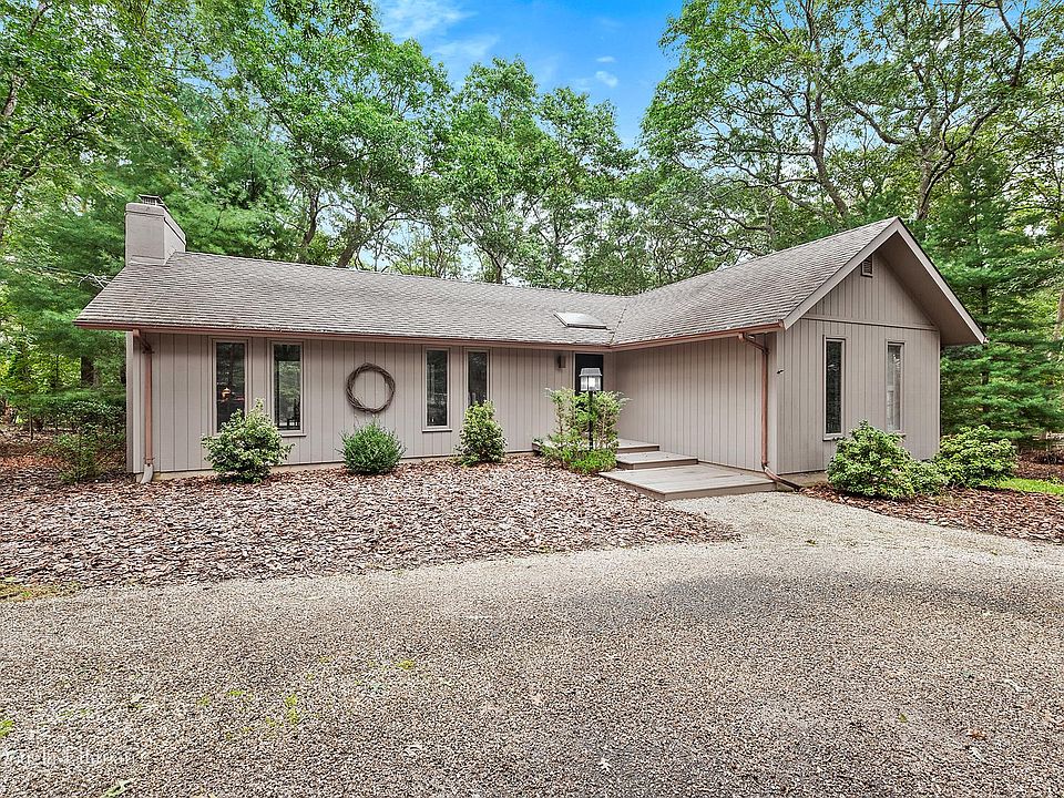 This cozy two bedroom, two bath ranch style house is situated on just under half an acre with ample amount of privacy. The one level house includes the kitchen area leading out to the back yard, large living room with wood-burning fireplace and two sliding doors, en-suite master bedroom along with guest bedroom and bath. The full basement has great ceiling height and egress which provides potential to finish. This house is in great condition and priced to sell!