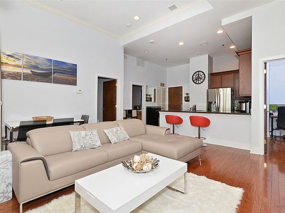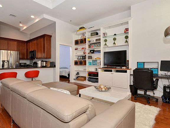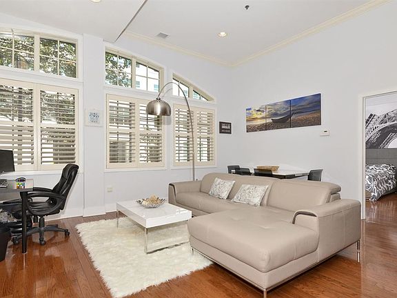 Beautiful condo with 1 bedroom, 1 bath + Den and two deeded parking spaces in downtown Jersey City. Featuring gleaming hardwood floors throughout, High ceilings, Recessed lighting, and Central A/C. Gourmet Chef's kitchen with granite counter tops, eat-in breakfast bar, and custom cabinetry. A sun drenched living room with custom built in entertainment center, bookshelves, Hunter Douglas blinds and in the bedroom a custom made closet. Close to all NYC transportation. A must see!!!