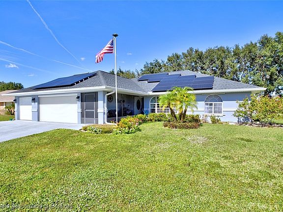 Lovely 3-bedroom, 2-bath home located in the desirable gated community of Tomoka Heights in Lake Placid, FL. As you enter through the front door, you’re welcomed by an expansive great room that seamlessly flows into the dining area and a beautifully designed kitchen. The kitchen features new, chef-friendly appliances along with abundant cabinetry and generous counter space—perfect for cooking and entertaining. The split floor plan provides excellent privacy for family and guests, while the Master Suite serves as a retreat of its own. The spacious 2-car garage also includes room for a golf cart, offering plenty of parking and storage options. This home has been thoughtfully updated with a new AC system, water heater, reverse osmosis system, and solar panels. Storm shutters are also included for added peace of mind. Tomoka Heights is a premier gated 55+ community offering a stunning community center, a fantastic in-ground pool area, dog park, fitness center, and an inviting neighborhood atmosphere.