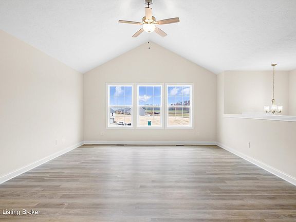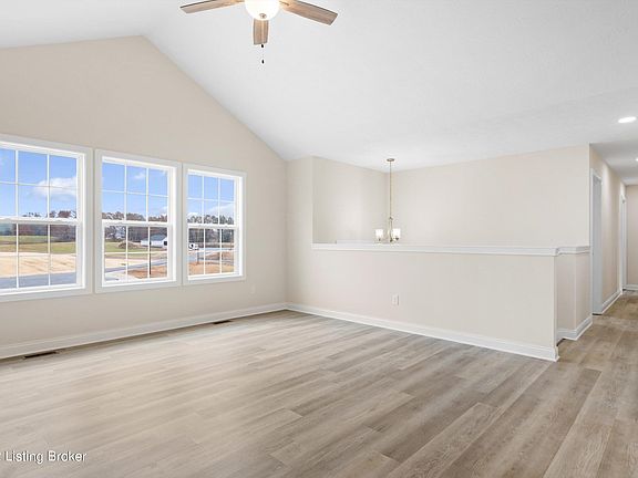 New Construction! There is a one year builders warranty and the yard will be sodded. Beautiful 3 bedroom, 2.5 bath home with an attached 2 car garage. This entrance to this home boasts an open floor plan and a soaring vaulted ceiling that provides a spacious feel. The kitchen has plenty of cabinet space for storage. The kitchen also features granite counter tops and new appliances. The primary bedroom has a tray ceiling and an en suite bathroom with a double vanity. the laundry room is conveniently located on the main floor close to the other two bedrooms.