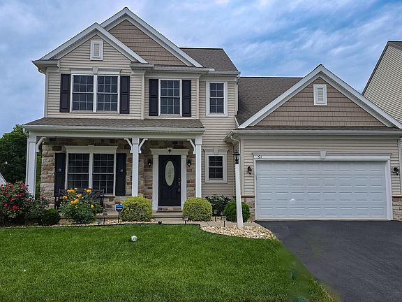 Welcome to the "Lisette" Landmark Homes at 61 Hamlet Circle of the Hamlet Square community! Beautifull newly upgraded single-family home with Stunning stonework entrance with a beautiful big size porch. This Single-Family home has 4 good size bedrooms, 3 baths, and 1 half bath, is 2,182 square feet, and has fully finished basement of 920 Sqft with well-designed media room nice kitchen and additional full bath with plenty of free space for family event. 2-car garage and spacious living areas, 9' ceilings on the first floor. Cozy gas fireplace and plenty of natural light in the family room and Kitchen is open to the breakfast area and family Room, and includes cabinetry with crown molding, and a pantry or storage room. The Master Bedroom suite includes a spacious walk-in closet and a private bathroom with a shower, with double vanity top. Another guest bedroom has a walk-in closet. Ceiling fans with lights in each room. New flooring in the entire first floor, second level hallway, bathrooms & laundry also new carpet on all the bedrooms. The charming front porch is a great spot for relaxing. This home is conveniently located to shopping, restaurants and major routes, and top-rated CV Schools! Home at Last!