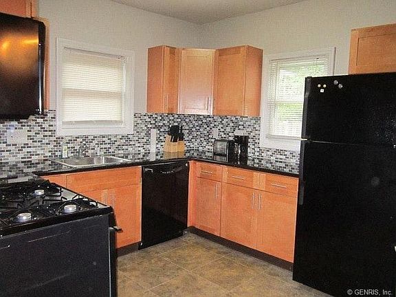Stunning home with totally remodeled kitchen & baths! Newer appliances included. Tear off roof, windows, & gas fireplace insert new in 2011. Newer third floor bedroom suite with skylight. Recent hi-efficiency furnace with central air. New gutters. Entire house re-insulated. Enclosed side porch. Just move in to this super home. Other features include: 3 Bedrooms 2 Bathrooms 1600 Square Feet Partially fenced yard Cabinet and counter space is abundant Nice dining room; large living room Hardwood floors refinished Walk up attic Central air conditioning New roof 1 car garage Paved driveway Points of interest: 1.0 Miles to Latta Road 2.7 Miles to Mt. Read Wegmans 5.9 Miles to Wegmans on Culver Road 4.9 Miles to LA Fitness in Greece on Ridge Road 5.4 Miles to LA Fitness in Irondequoit 2.4 Miles to Planet Fitness in Greece 5.7 Miles to Planet Fitness in Irondequoit 8 to 10 miles to Strong Memorial Hospital and University of Rochester Food/Restaurants - Schooners, O'Laughlins, Marges, Pelican's Nest, Mr. Dominic's, Windjammers, Nola's, Abbott's, Eastsiders, Bill Gray's, Schallers all close by Hose 22 Firehouse Grill - 2.2 Miles away too Owner pays for water and trash removal. Tenant is responsible for putting Rochester Gas and Electric in their own name and paying their own RGE bills.