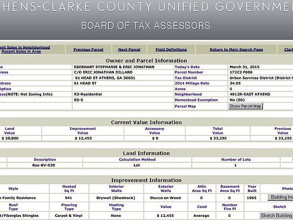 This 941 square foot single family home has 3 bedrooms and 1.0 bathrooms. This home is located at 61 Head St, Athens, GA 30601.