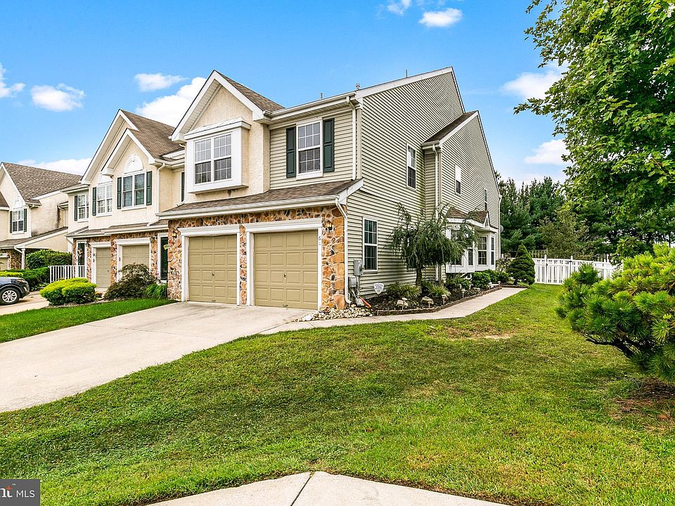 Back on the market! Their loss is your gain. Welcome home to this END unit townhome in the Courts at Hearthstone, Marlton. Entertaining inside and out is a breeze! Your oversized backyard is fenced in, has newly (2020) sealed pavers, and is truly one of a kind for a townhome. Enjoy 2,160 square feet of beautiful living space. The main floor has new (2019) flooring throughout. This inviting living area features a dining room, living room, 2 story family room w/ gas fireplace and vaulted ceilings. The spacious, bright kitchen has sliders out to your paved patio and lovely backyard. There is also a powder room on this floor. The second-floor, has all newer carpeting (2018), features three bedrooms and two full bathrooms. The large primary bedroom offers 4 closets, 2 are walk-ins, and a private full bathroom with double sink, a garden tub and a Ring doorbell! You'll also have a two car garage. The additional 2 bedrooms are very large with plenty of closet space as well. The second full bathroom has double sinks as well as shower and bathtub. The laundry room is conveniently located on the second floor and has shelving for extra storage. The home also backs up to a partially wooded area, creating a very peaceful area for relaxation. Security system in place and plenty of storage, and a private driveway. HVAC 2018, Washer/Dryer 2018, toilets 2019, roof 2014. Marlton is conveniently located and well loved for the schools and community. There is a sprinkler system that is not hooked up. There is a security system and Ring doorbell. Seller is offering a 1 year home warranty. Welcome to your new worry free home! 2020-12-16