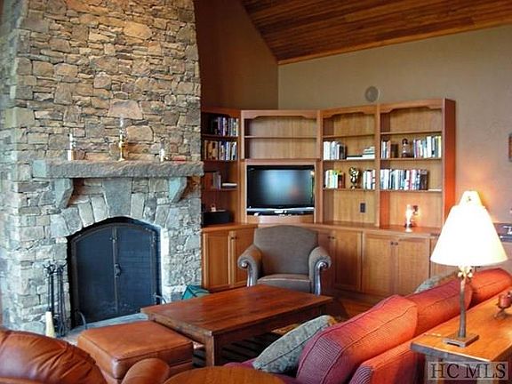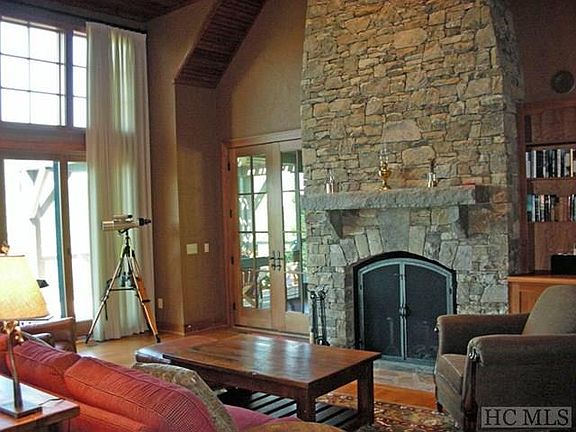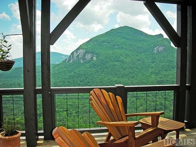Breathtaking Whiteside Mtn. views overlooking US National Forest from this gorgeous home. Large great room with huge stackstone fireplace, wet bar, built-in, oak floor, chef's kitchen w/cherry cabinets, granite countertops, Viking appliances, butler's pantry w/wine cooler. ELEVATOR to private Master Suite retreat with den/office/sitting room, and goes to all three floors. 2 porches, one with a stone fireplace and built-in grill; deck with pergola; 2-car carport. Extensive rock work and paved drive. Partially furnished, to include: dining room table, chairs, sideboard, living room & 2 downstairs guest bedrooms. Lots of built in cabinets, storage, & sink in laundry on main floor.