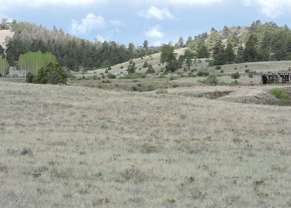 Rolling treed hills with different view corridors. Well in Place in center of acreage near loafing shed. Great camping and many building Sites. Close to three major reservoirs and plenty of National Forest. All Large parcels there. On County Road no HOA. All things Rocky Mountain out your door. Located in the geographical center of Colorado. Set up there and tour the Rockies. Trees, Yes; Power, No; Phone, Yes.