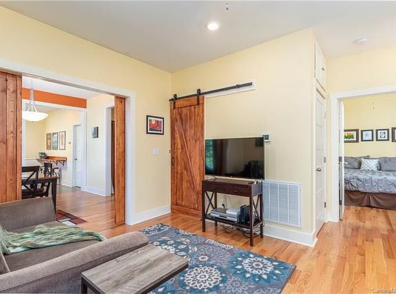 Lock and Leave, turn key, all within steps from downtown Asheville and around the corner from Historic Montford. Walk or easy bike ride to Riverside Drive and all that it offers. Zoned Commercial but can be used for both Residential and/or Office, see City of Asheville for Zoning for specifics. Approved for Home Stay. Seller has added dual zone heating and cooling as well as a gliding barn door with locks for very lucrative AirBnB, separate from their private quarters. Completely renovated in 2016. Beautiful hardwood floors, open living concept, spacious rooms, outdoor living space with deck, covered front porch for sipping afternoon tea. Climate controlled crawl space for storage, completely encapsulated with dehumidifier in place as well as security system with motion detector lighting. Custom Built Closets and let's not forget the Chef's Kitchen with gas stove, double oven, commercial grade vent hood with lots of prep space. Custom-built breakfast bar for cozy mornings in!