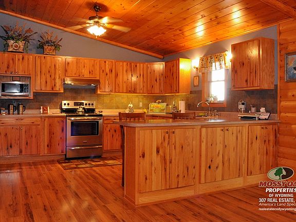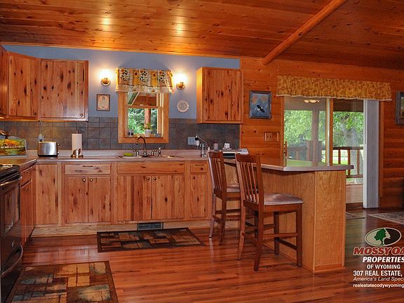 Residential 2.58 acre property just four miles from own. The 1524 square foot some was built in 1996 and has two bedrooms and one bathroom. Beautifully landscaped fenced yard with mature trees and garden area. Covered deck to enjoy the beautiful mountain views.