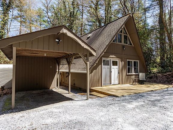 This in-town a-frame home has all you need to enjoy Highlands either year round or seasonally. It features a master bedroom on the main and large front and back decks. The gravel drive give a circle access for easy approach and the single carport is very convenient with additional storage space at the back . There is an additional bath on the main for guest and occupants of the uptairs second bedroom. The location is quiet, peaceful, and gives the sense of being isolated. A great buy!