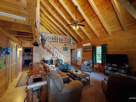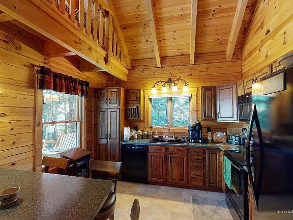 Stunning log home with beautiful waterfront view of Schoodic Lake. 3 bedroom, 2 baths, and a cozy loft. Detached 2 car garage.