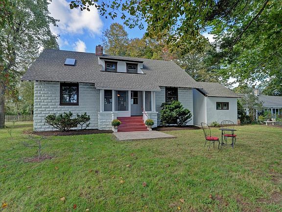 Savor the Scenic Solitude! Perched high atop a bluff where the headwaters of the Swimming River and Shadow Lake join to form the storied Navesink River, sits a Cape Cod home of another time. Simply turn into the private lane that leads to the oversized gravel driveway. The covered, open-air front porch and Dutch door entry will welcome you home. The first floor features the period charm of hardwood floors and high ceilings, with windows on multiple sides of each spacious room, providing abundant natural light, enhanced cross ventilation, and sensational river views. Enter into the living room / salon accented by the large stone fireplace and 10' beamed ceilings. The dining room also boasts 10' beamed ceilings, as well as a built-in corner cabinet.