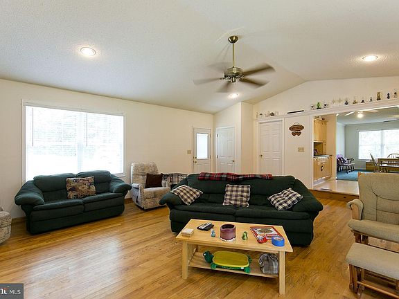 Charming 4BR/2BA situated on 6.04 unrestricted private acres. Family room boasts vaulted ceiling, gas fireplace & hardwood floors. Newer roof, plenty of kitchen cabinets n freshly painted. Detached building features office, storage area & garage; could be converted into additional living space. Mins to Sleepy Creek Wildlife Management Area w/ hiking, fishing n camping. Great Value will not last!