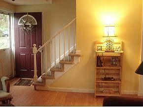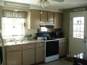 It's a cape that can act as a ranch! First floor offers 2 good sized bedrooms, full updated bath, hardwood floors, eat-in just freshened up w/ beadboard decor, new paint,new floor & new appliances kitchen. Large living room w/ fireplace & woodstove insert-very cozy! Sunny formal dining room or add'l bdrm w/ ceil fan, wide pine flrs, closet, slider to deck-great for home office or add'l bdrm.2nd flr has new berber carpet, front to back mstr w/ 2 dbl closets, updated 3/4 bath & 2 add'l bdrms. LL ( aka "womantown")has fin fam rm w/ tile hearth & flue-perfect set up to add gas fplc; & part finished & heated add'l room & storage space. Quiet street close to everything-schools, highways, shopping! Additional features: new windows, new front door, open rail staircase, eve storage,new interior trendy paint colors & sunny deck. Great level fenced lot w/ shed, loads of flowers, veggie garden & mature trees bound property-perfect spot for puppy!. A real sweetie!!