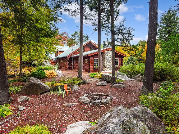 Belgrade Lakes region.... Year-round home with shared access to beautiful sandy beach and your own boat mooring on Long Pond! Stunning 4 bed/3 bath cedar log home situated on a quiet 1.2-acre lot.. Great room with expansive fieldstone fireplace, open kitchen, dining room, and large walk-in pantry are perfect for entertaining. Choose from primary bedroom suites on either the first or second floor - both with a full bath featuring tile and glass walk-in showers; first-floor walk-in closet offers ample built-in storage. Two additional bedrooms, laundry room and another full bath are also found on the first floor, perfect for one-level living if desired. In the upstairs suite, there's a cozy nook currently used as office space and an open loft area with built-in bookshelves. Amazing post and beam barn-style garage with a spacious second floor for storage or additional living space, and an attached covered storage area. Surrounding the home, you'll find a park-like garden oasis with stunning rock walls and pathways, natural boulder gardens and perennials galore. Outbuildings include a heated 'cottage', treehouse, and garden shed. Within just a few minutes of this extraordinary home are the village of Belgrade Lakes (by car or by boat!) for dining, shopping, and community events, the award-winning Belgrade Lakes Golf Course, public boat launches on Long and Great Ponds, and so much more. Adjacent to your new neighborhood, discover the many miles of trails in the Kennebec Highlands for year-round recreation. This quiet location is perfect for working from home while Augusta, Waterville, and Farmington are about a 1/2 hour drive and you can be on the slopes or trails at Sugarloaf in just over an hour. Schedule your showing today!