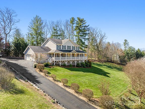 Idyllic home situated to capture year round mountain views from over 490 sq.ft. of covered porch. Begin at the impressive entry into a two story foyer with newly refinished hardwood flooring. A wealth of natural light in every room, such as the cozy living room including a tile fireplace, gas logs and built in shelving. Warm and inviting kitchen perfectly equipped with beautiful granite countertop and backsplash, stainless steel appliances, pendant lighting and breakfast bar. Spacious primary suite on main floor with custom closet system, walk-in tiled shower, heated seat and vanity countertop. A second primary suite on the upper floor with walk in closet, jet tub and walk in shower. Additional bonus/office room. Newly paved driveway with ample parking. Private back deck with built in gas line for your grill to entertain with ease. Generous, lush yard gives plenty of room for gardening and play. Conveniently located only 4 miles to downtown Weaverville and 14 mi to downtown Asheville.