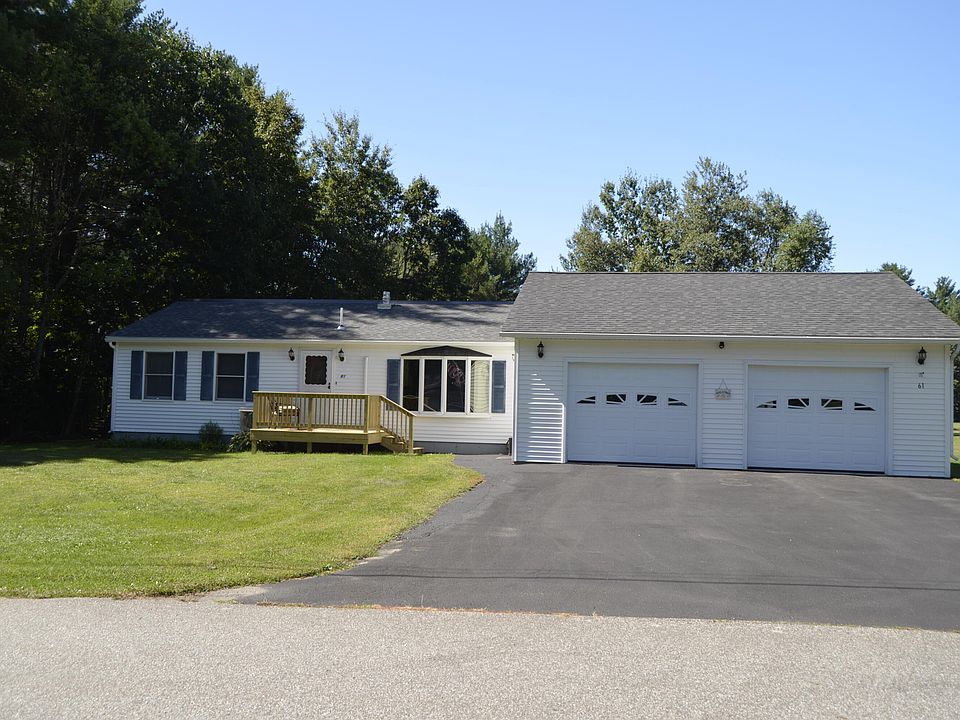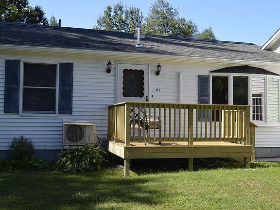 Welcome to your perfect retreat in a vibrant 55+ community! This charming two-bedroom, one-bathroom home offers a peaceful, low-maintenance lifestyle with all the comforts you desire. Step into a bright and open living space. New  ceramic tile in the kitchen and new carpeting in the living and bed rooms as well as fresh paint. The kitchen boasts modern updated appliances. Off the kitchen is an attached bright 4 seasons sunroom with access to a hook up for a pellet stove if you desire. Attached deck offers space to overlook and enjoy 5 beautiful acres that abuts the property. Both bedrooms provide comfort and space, while the bathroom is designed for convenience and ease. Two heat pumps, for added comfort year round. Recent improvements include a new roof, water heater, pex plumbing, oil furnace tank and chimney.